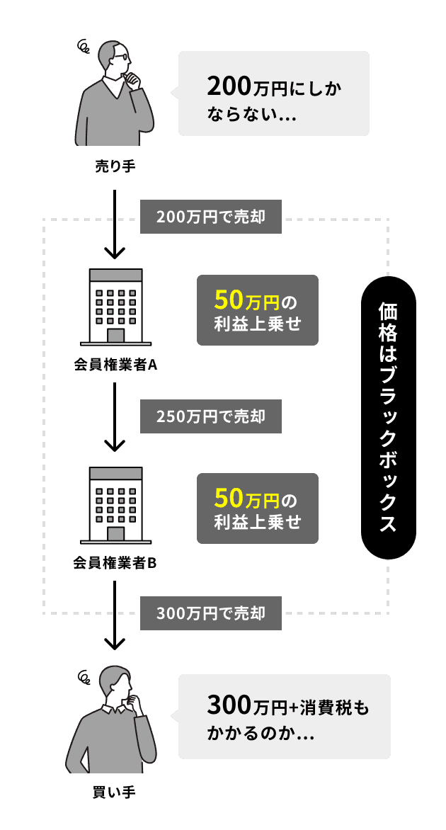 会員権価格100万円の場合