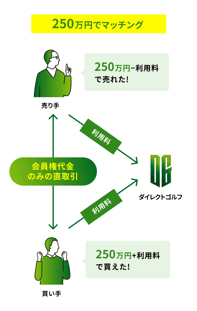 ※4 【従来の取引システム】 2,000,000円−手数料55,000円=1,945,000円 【Direct Golf】2,500,000円−(システム利用料125,000円+システム利用料の消費税12,500円)=2,362,500円 【差額】417,500円
